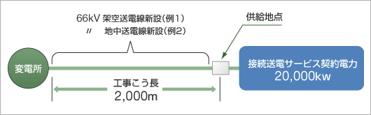 (例2)66kV地中送電線新設工事:工事こう長:2,000(m) 接続送電サービス契約電力:20,000(kW)